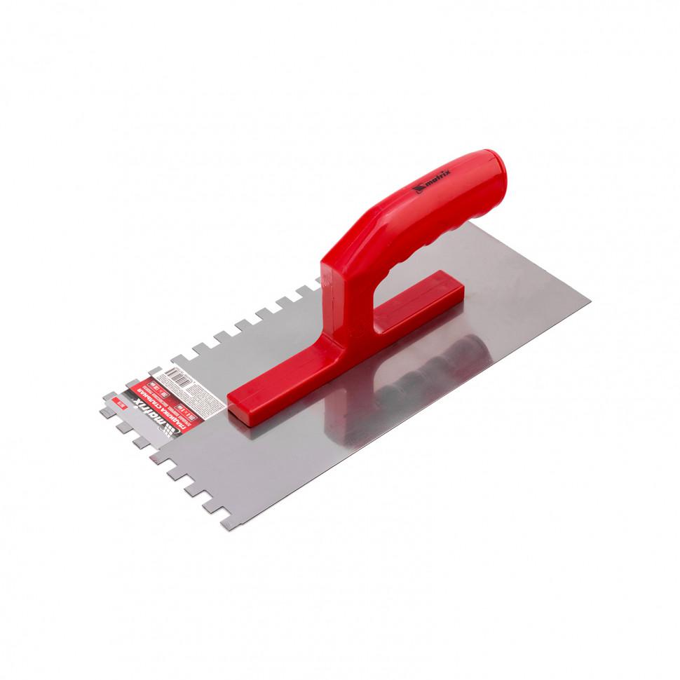 Гладилка стальная, 280 x 130 мм,зуб 10 x 10 мм, зеркальная полировка, пластмастмассовая ручка, Matrix 86779